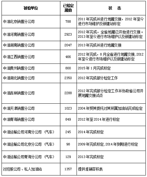 各地区地罐标定工作一览表